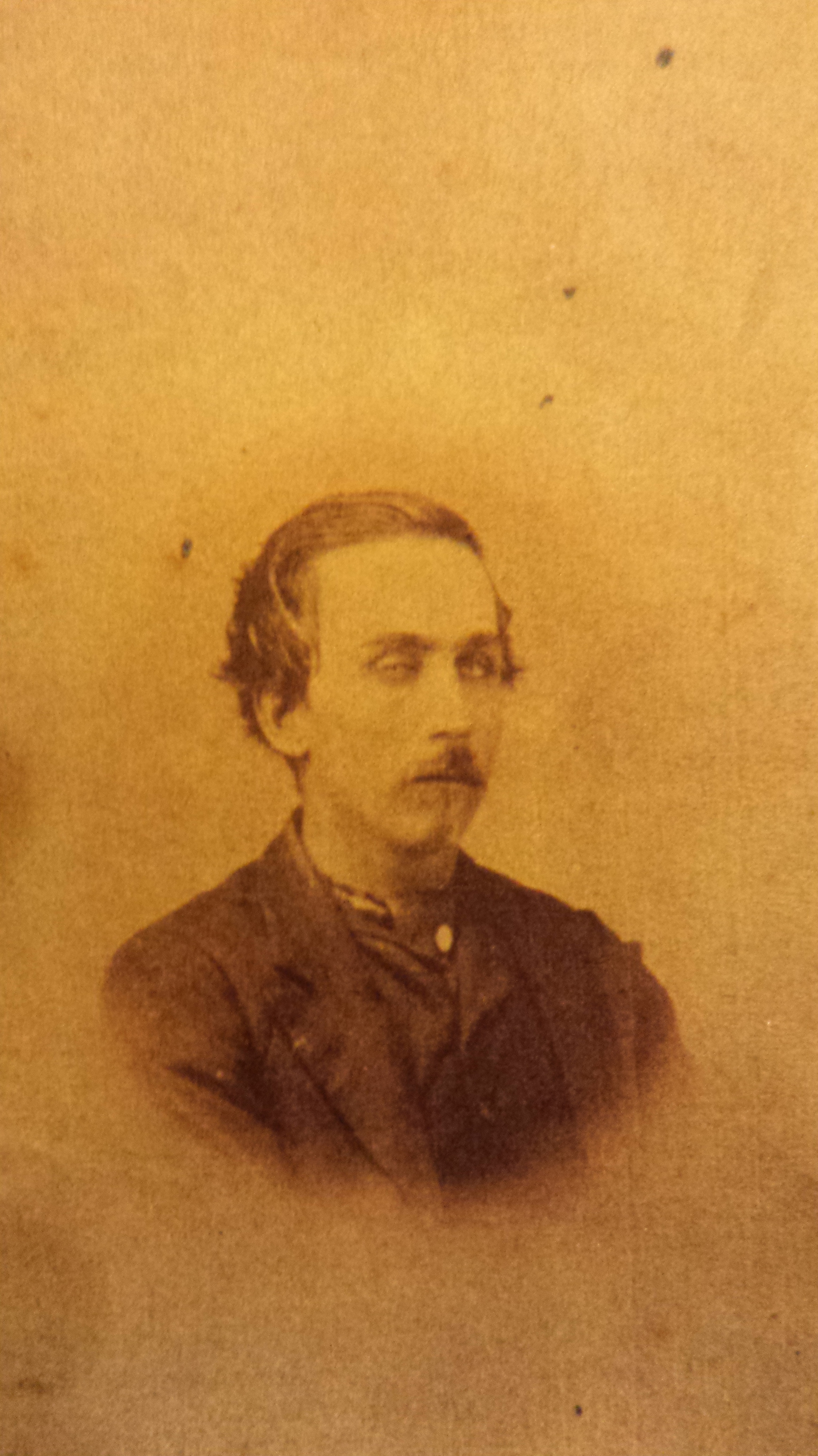 The Samuel Caple home, Puyallup, WA, 1905. The woman standing is Margaret, the seated gentleman, Samuel. The little girl is probably their youngest child, Lida. The young man standing on the right might be a son. The man on the left is unknown.